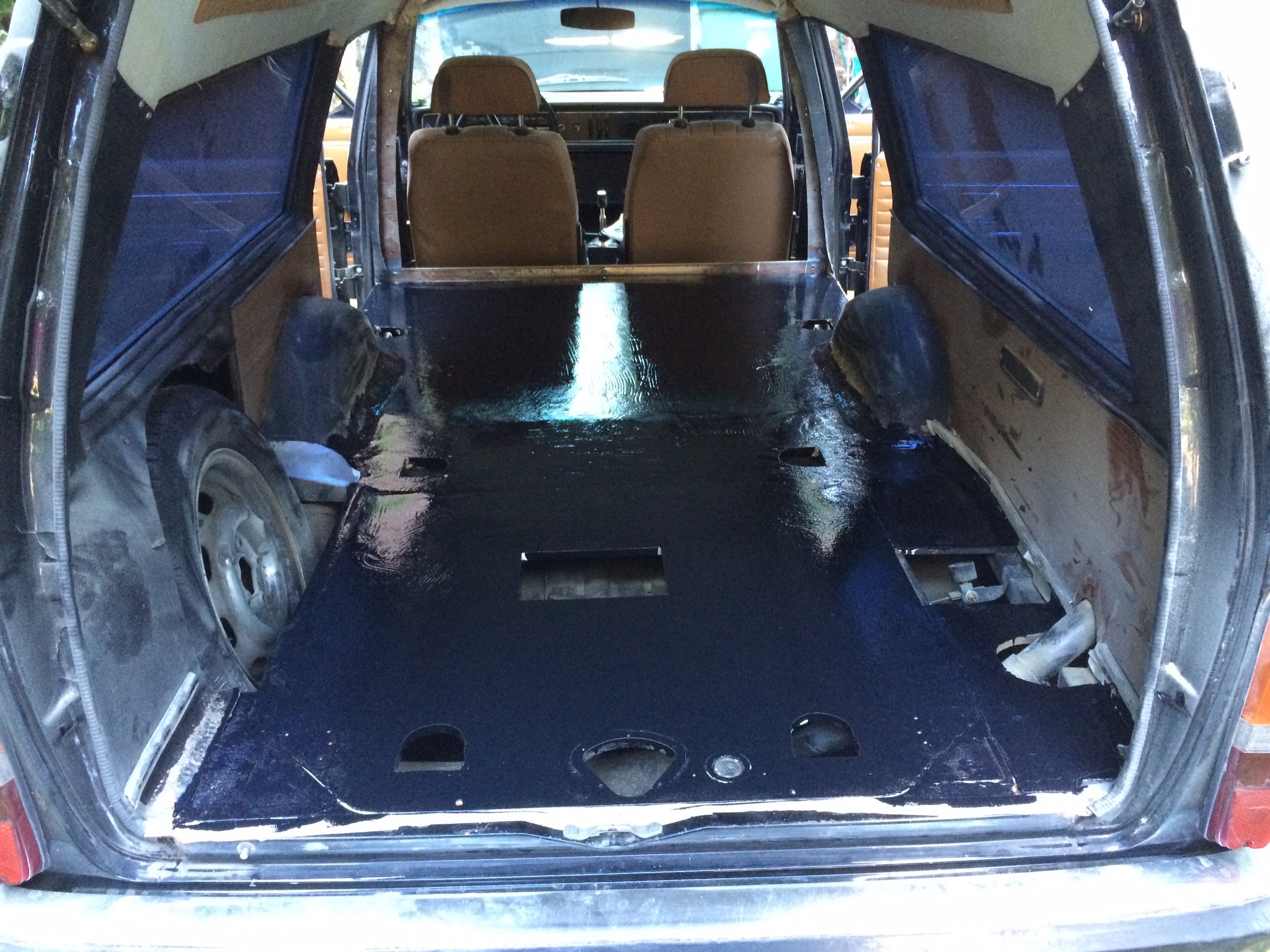Nachdem wir bereits den Sargschlitten, die Trennwand und das verklebte Linoleum rausgerissen haben, konnten wir uns dieses Wochenende konstruktiverer Arbeit am Volvo P145 widmen. Da wir den Wagen nicht nur für den Baltic Sea Circle umbauen, soll es nicht nur zweckmäßig, sondern auch schön werden: