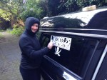 Drei Scheiben konnten wir heute Abend noch bekleben, der Rest folgt morgen. Und wenn die Kriegsbemalung fertig ist, gibt es auch Bilder dazu. Ab jetzt fahren dann auch alle Unterstützer_innen unserer Spendensammlung auf unserem Auto mit. Auch an Euch noch einmal Danke!