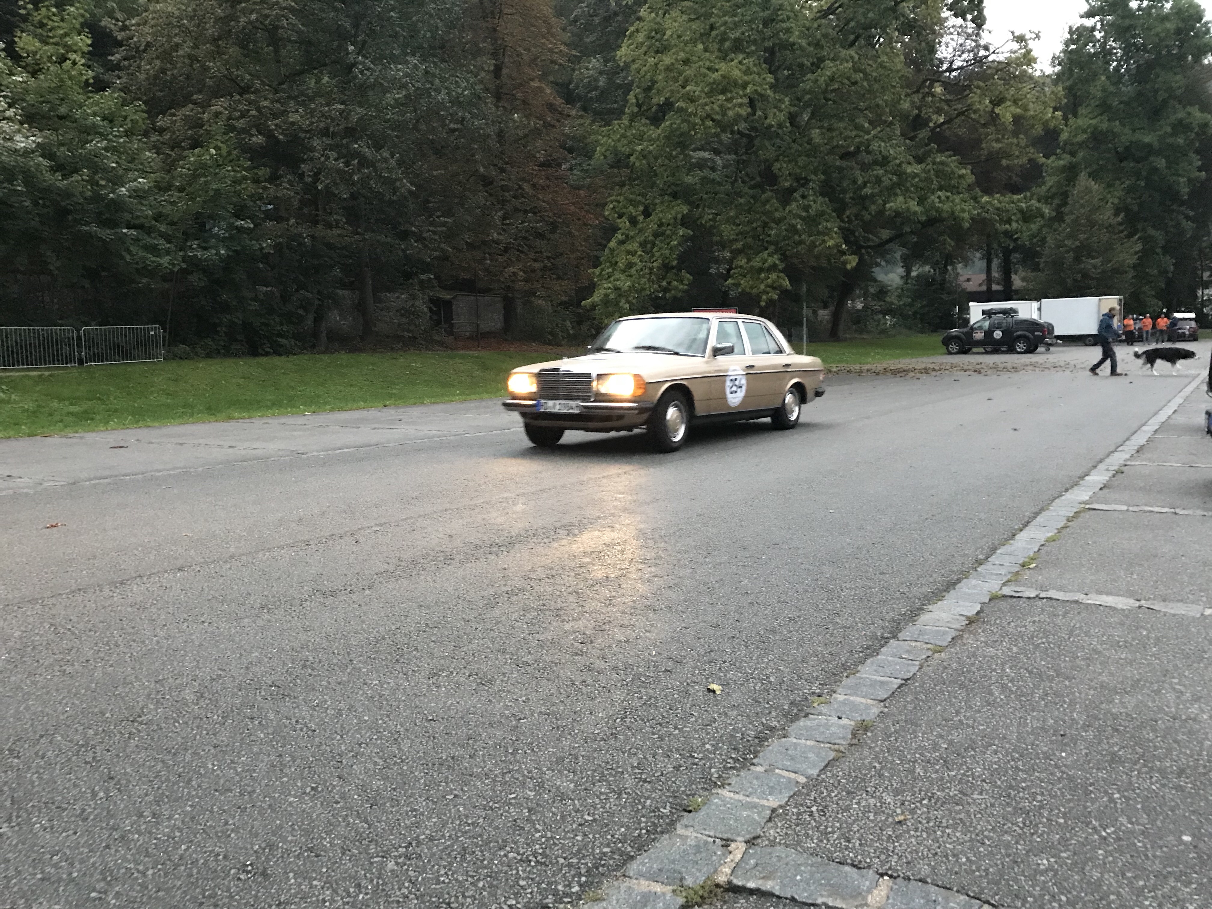 Und so ging es dank günstigem Parkplatz früh über die Startlinie, die Startnummern spielten dafür keine Rolle. Der Volvo 740 schnurrte gemächlich dahin, ein Beschleunigungswunder und Kurvenräuber ist er ja weiss Gott nicht. Eingerichtet hatten wir uns schnell, auch in unserer Kommunikation. Der Groove stimmt, die Wechselintervalle beim Fahren auch und auch bei der gegenseitigen Fürsorge in Bezug auf diverse grundständige Bedürftigkeiten stimmt. Es lief gut.