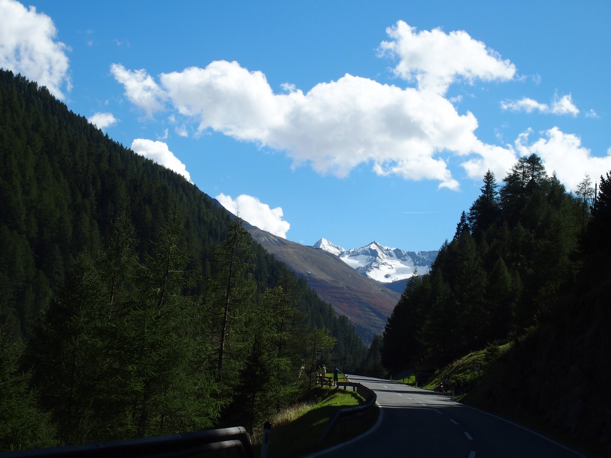 Die Fahrt Richtung Timmelsjoch eher unspektakulär und flüssig, lediglich Insbruck stehen wir im Stau. die Berge ziehen aus der Ferne immer näher. Und kündigen an was kommen wird: Mountains, Digger. Mountains. Und noch mehr Mountains.