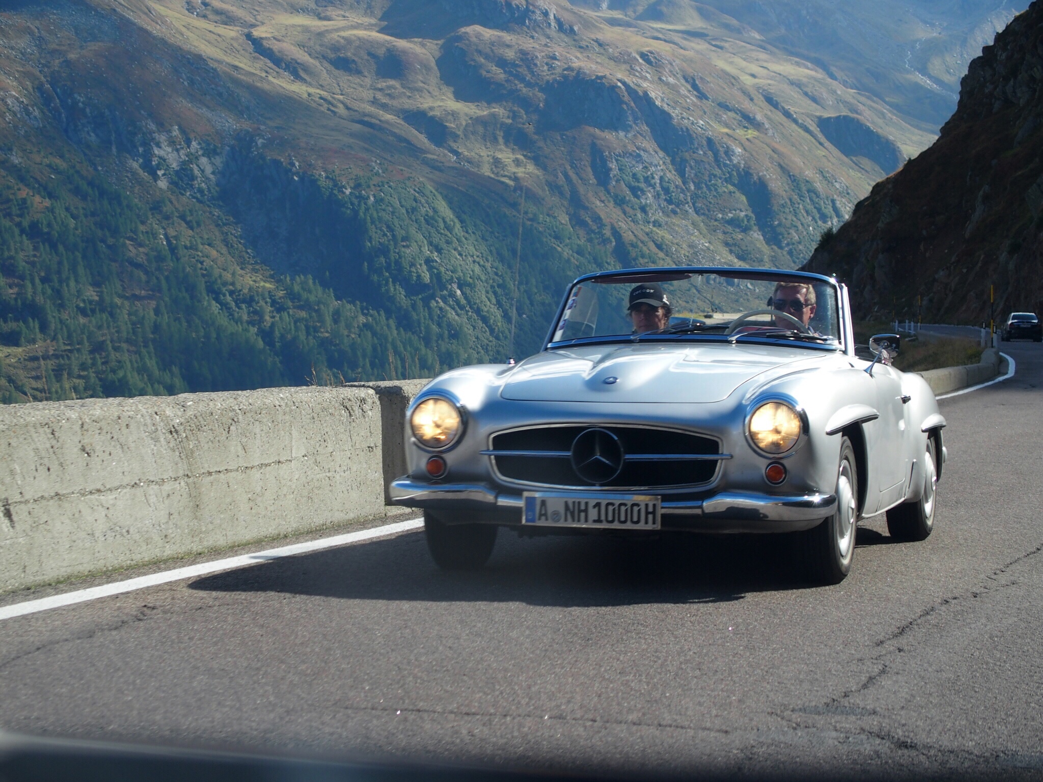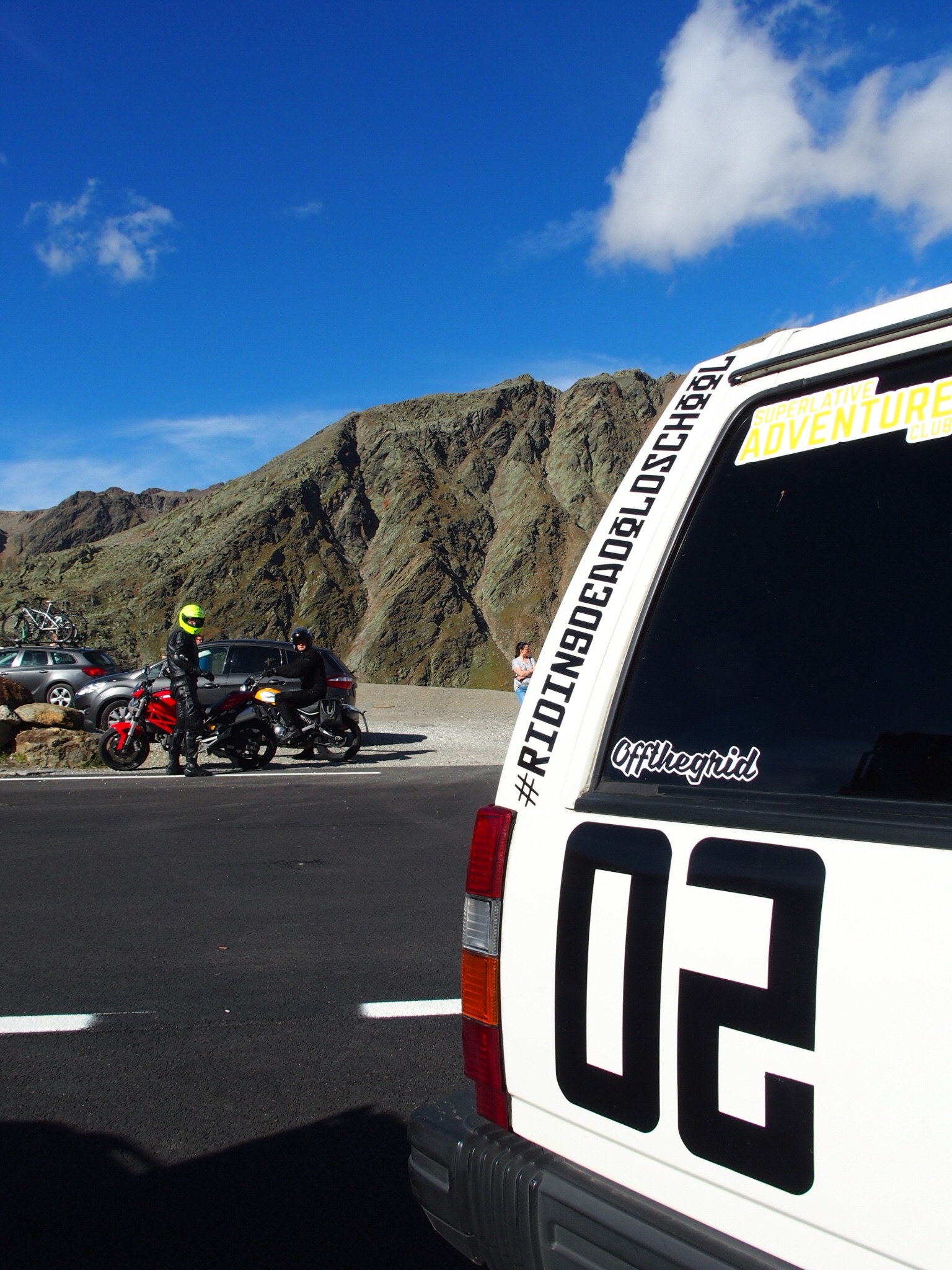 Das Timmelsjoch bin ich bereits auf der 20Nations gefahren, also sass Hinne am Steuer und lenkt unser Schlachtschiff den Berg hinauf. Unter Last auf Benzin, beim Gasbetrieb ist die Wärmeableitung schlechter, da gehen wir kein Risiko ein.
