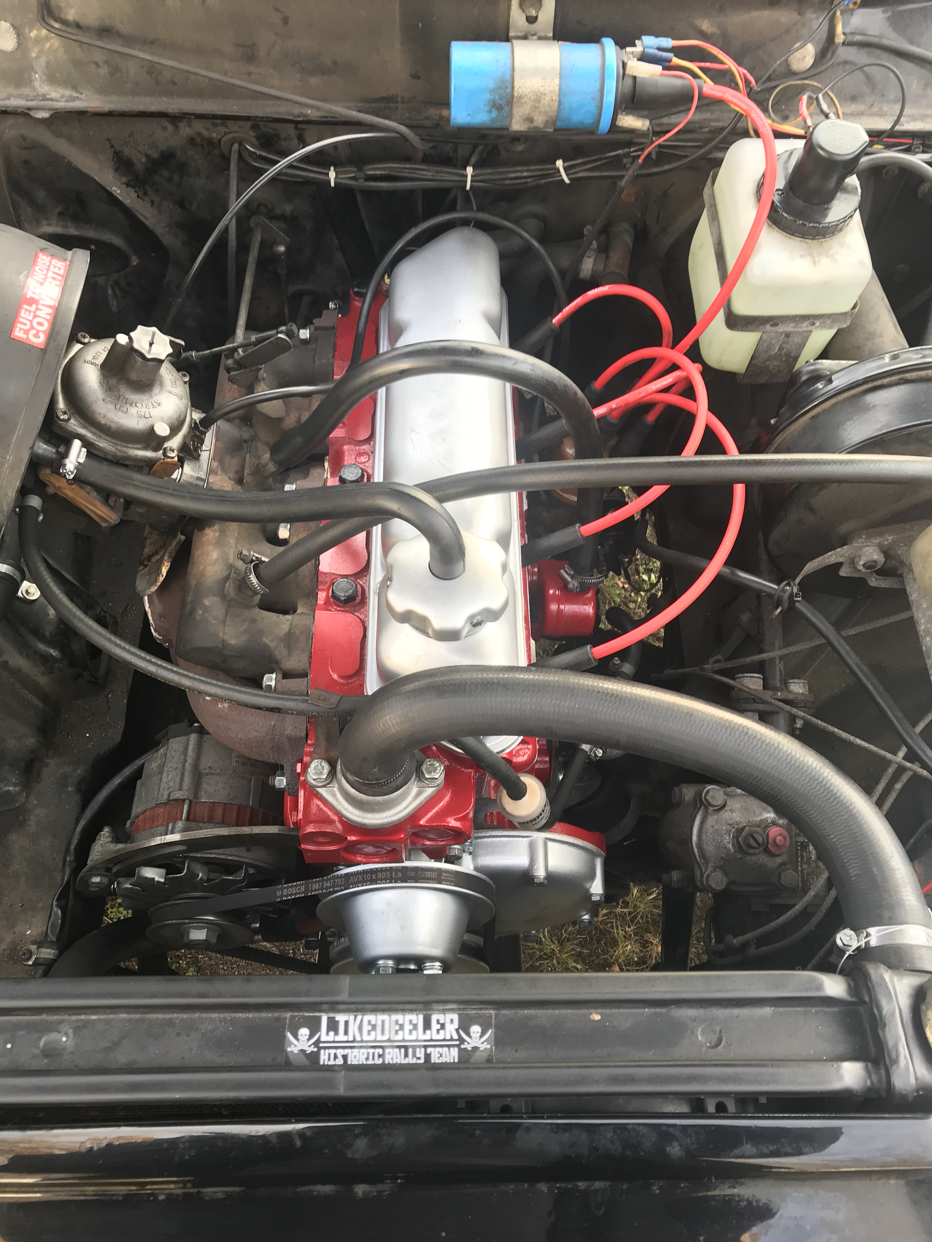 Somit war klar: der B20-Motor unseres Leichenwagen ist hin. Nach langem Hin und Her Überlegen und Abwägen von Möglichkeiten entschieden wir uns dafür, den Motor komplett neu aufbauen zu lassen. Buttkereit Autotechnik in Duisburg zerlegte den Motor in alle Einzelteile, übrig blieben der Block, der Kopf und die Ölwanne. Diese wurden entlackt, entfettet, neu lackiert, alle Gewinde geprüft und bei Bedarf nachgeschnitten, die Zylinder auf das nächste Übermaß gefräst und neu gehohnt, alle Dichtflächen neu geplant und alle Lager erneuert. Alle verbauten Teile von den Pleueln über alle möglichen Buchsen bis hin zur Kurbelwelle und Öl- und Wasserpumpe sind neu, feingewogen, justiert und mit geringstmöglichen Toleranzen verbaut. Natürlich fährt der Motor jetzt bleifreies Benzin, das heisst das wir nicht immer noch Bleiersatz nachkippen müssen und dadurch die Geruchsbelästigung nach hinten auch sinkt.