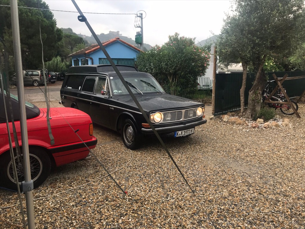 Also zurück zum Platz, gefrühstückt, Blogbeitrag für gestern geschrieben und etwas rumgehangen. Und festgestellt, dass die Ameisen jetzt am Zelt von Katrin und Matthias sind. Genau da, wo die Kühlbox steht. Also zieht diese wieder um und wandert auf ihren Platz in Michas Wagen. Inklusive des Landstroms, den verlegen wir auch dorthin. Wir versuchen gegen 13:00 Uhr die Werkstatt zu erreichen, die machen aber Mittag. Kurz danach fängt es an zu donnern, ein heftiger langanhaltender Schauer folgt. Mitten in diesem Schauer dann der Anruf aus der Werkstatt: wir können das Auto abholen. Wir sind etwas irritiert – sollten wir nicht vorher über den Kurs reden?