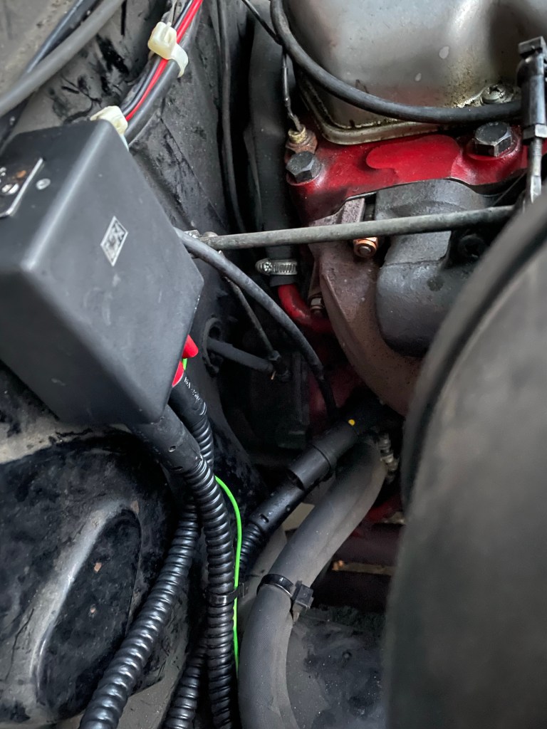 Das Thema Beleuchtung ist natürlich in einer Gegend, in der die Sonne saisonal nur kurz über den Horizont lünkert ein Thema. Die Hauptscheinwerfer mit integriertem Fernlicht und Bilux-Fassungen liefern dank Bilux auf H4-Adaptern eine recht okaye Lichtausbeute, wir hatten bereits zum BSC2016 ein Paar Zusatzscheinwerfer im Grill montiert. Diese sind jetzt mit gelben 55W-Birnen ausgestattet worden. Gelb vor allem weil gelbes Licht auf weissem Schnee und Eis stärkere Kontraste produziert und es so keinen Weiss-in-Weiss-Effekt gibt. Ebenfalls Gelb, allerdings bereits die Streuscheiben sind die neu unter die Stossstange montierten Hella Comet 550 Fernscheinwerfer. Während die Zusatzscheinwerfer im Grill auf das normale Fernlicht geschaltet sind sind die Hellas als „Arbeitsscheinwerfer“ autark geschaltet. Das hat zwei Gründe, einer davon ist sehr simpel und heisst „Strassenverkehrszulassungsordnung“. Der andere ist, das wir mit den an einer für Nebelscheinwerfer typischen Stelle montierten Fernscheinwerfern unter Schneegestöber und schlechtem Wetter „durchleuchten“ wollen ohne uns selbst zu blenden. So die Theorie. Bei der Gelegenheit wurde auch noch der ganze Kabelkram im Motorraum aufgeräumt und sortiert, ein paar Anfänger- und Flüchtigkeitsfehler behoben und die Nebelschlussleuchte wieder zum Leuchten gebracht.