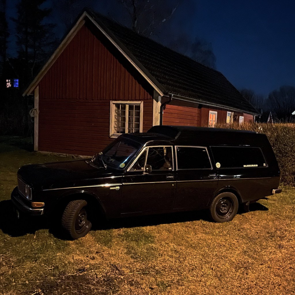 Von Simrishamn aus fahren wir noch ein Stückchen auf der 9 um bei Brösarp auf die 19 abzubiegen. Bei Olseröd biegen wir auf die 118 ab, dieser folgen wir durch Åhus bis Rinkaby um uns dort ins Hinterland nach Nymö zu schlagen. Uns kommen kaum noch Autos entgegen, es ist weiträumig sehr dunkel bis auf die immer gut ausgeleuchteten Kreuzungen. Die Beleuchtungsumbauten zahlen sich aus: die normalen Scheinwerfer plus Fernlicht, die zusätzlichen Fernlichtscheinwerfer im Grill und die unter der Stossstange montierten Fernlichter (diese mit 100W-Birnen) leuchten ziemlich gut die Strasse und die Landschaft links und rechts vor uns aus, Wild wie Füchse, Rehe, Hasen und ein Wildschwein sehen wir mehr als rechtzeitig. Einziger Kritikpunkt: Matthias hat die gelben unter der Stossstange montierten Hellas autonom verkabelt, sie sind also völlig unabhängig von der anderen Beleuchtung zu schalten. Das bedeutet aber, dass, sollten wir den vollen Weihnachtsbaum anhaben und ein Auto entgegen kommen, man zuerst das Fernlicht und die Zusatzscheinwerfer im Grill über den Fernlichtschalter am Blinkhebel ausschalten muss und dann am separaten Schalter noch die gelben Hellas. Das ist nervige Fummelei beim Fahren im Dunkel, ist viel zu verzögert und so blenden wir ein, zwei Sekunden den Gegenverkehr. Uncool. Ins Lastenheft für Schraubertage bei schönem Frühlingswetter kommt ein SPDT-Schalter für die Hellas. Mit diesem kann dann entweder komplett autark oder über den Fernlichtschalter geschaltet werden. So, wie es grade gebraucht wird.