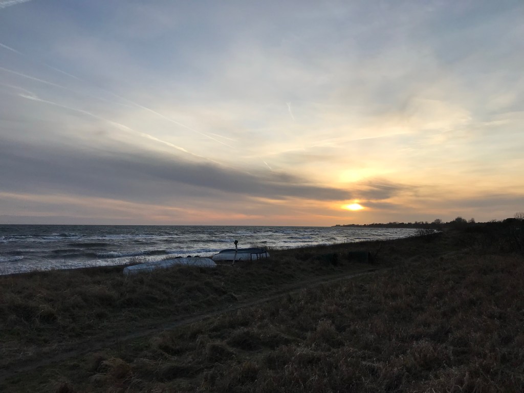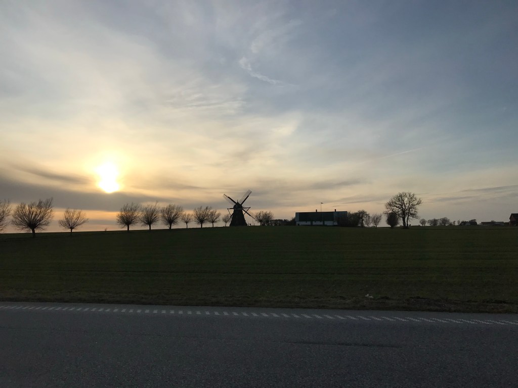 Die Brücke landet bei Malmö an, dort biegen wir direkt auf die E6 Richtung Trelleborg ab. Wir haben uns überlegt, große Teile der Strecke nach Norden direkt an der Ostsee entlang zu fahren. Zwar haben wir mit dem Baltic Sea Circle bereits eine Ostsee-Umrundung gemacht, allerdings nur formal – praktisch waren wir die meiste Zeit nicht einmal in der Nähe der Ostsee. Also ist das etwas, was wir irgendwie noch nachholen „müssen“. Die E6 fährt von Malmö Richtung Trelleborg noch ein wenig hinter der Küste, doch ab Trelleborg läuft sie in ständiger Sichtweite teilweise direkt neben den Stränden entlang. Es macht Spaß sie zu fahren, nur der böige aber sehr starke Wind zerrt ein wenig an den Nerven. Nicht schlimm, aber permanent. Irgendwo auf der Strecke halten wir kurz an und gehen kurz an die Ostsee, genießen das Abendrot und die kalte Seeluft im Gesicht. Nicht lang, immerhin haben wir noch ein paar Kilometer vor uns. Und es ist im Wind wirklich sehr kalt.
