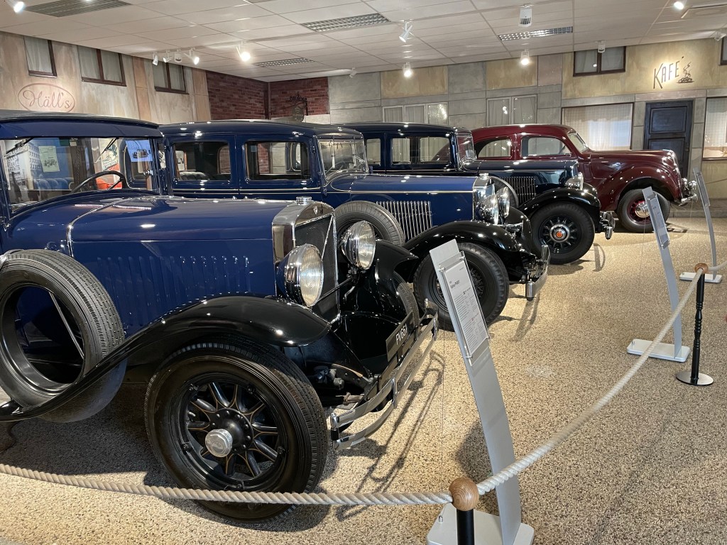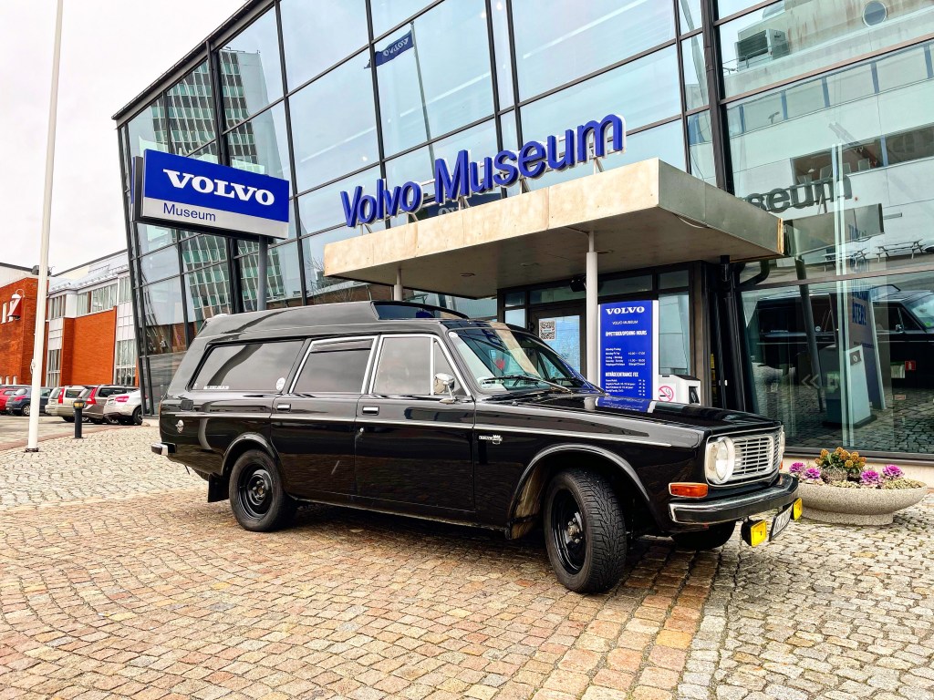 Anschließend gehen wir durch die Ausstellung, die den Werdegang von Volvo ab der Gründung 1927 und dem Bau der ersten eigenen Autos ab 1928 nachvollzieht. Dafür sind die jeweiligen Fahrzeuge mit kleinen Zusatzinformationstafeln ausgestellt. Die Ausstellung ist nicht vollständig, gerade aus den ersten Jahren fehlen natürlich Fahrzeuge, aber auch in Folge hat die Ausstellung Lücken. Man merkt einfach, dass Volvo lange keine Geschichtspflege betrieben hat, sondern Fahrzeuge als Verkaufsobjekt betrachtet und produziert hat. Viel Raum haben die P1800er, sicherlich eines der beliebtesten Oldtimermodelle von Volvo, ebenfalls Buckel und Amazon sind gut vertreten. 140er gibt es einen Zweitürer, einen Viertürer und einen Kombi, Express oder Sonderfahrzeuge sucht man vergebens. Das irritiert uns. Immerhin ist die 140er Reihe jene Baureihe, die Volvo seine moderne bis heute geltende Formensprache geschenkt hat.