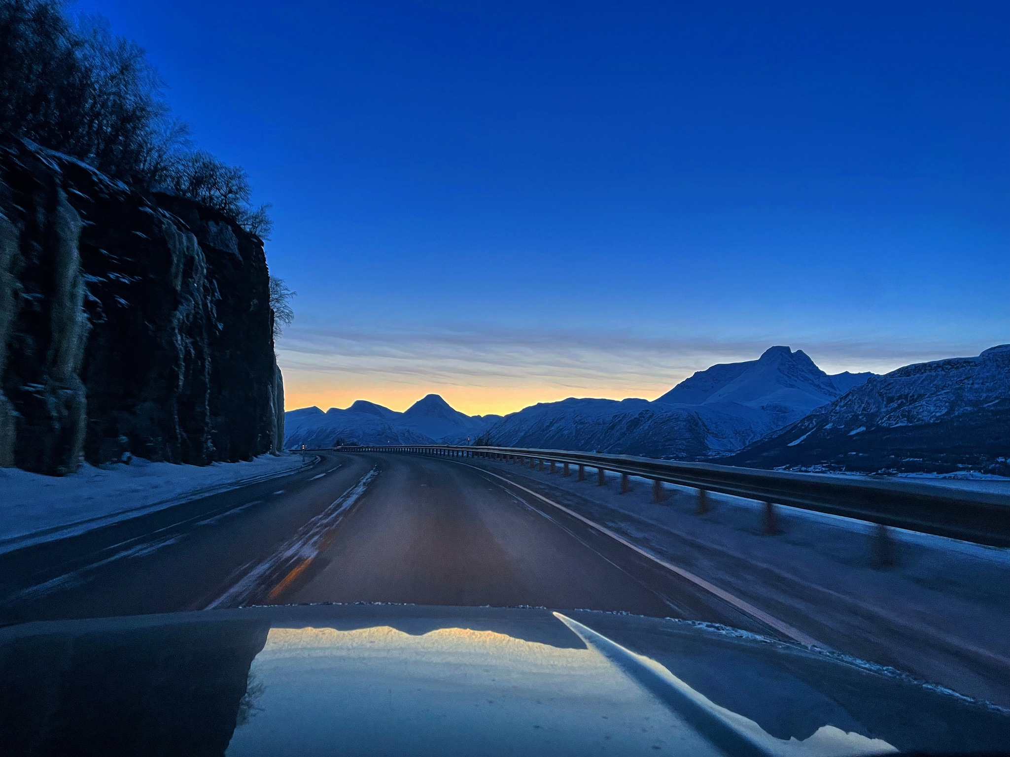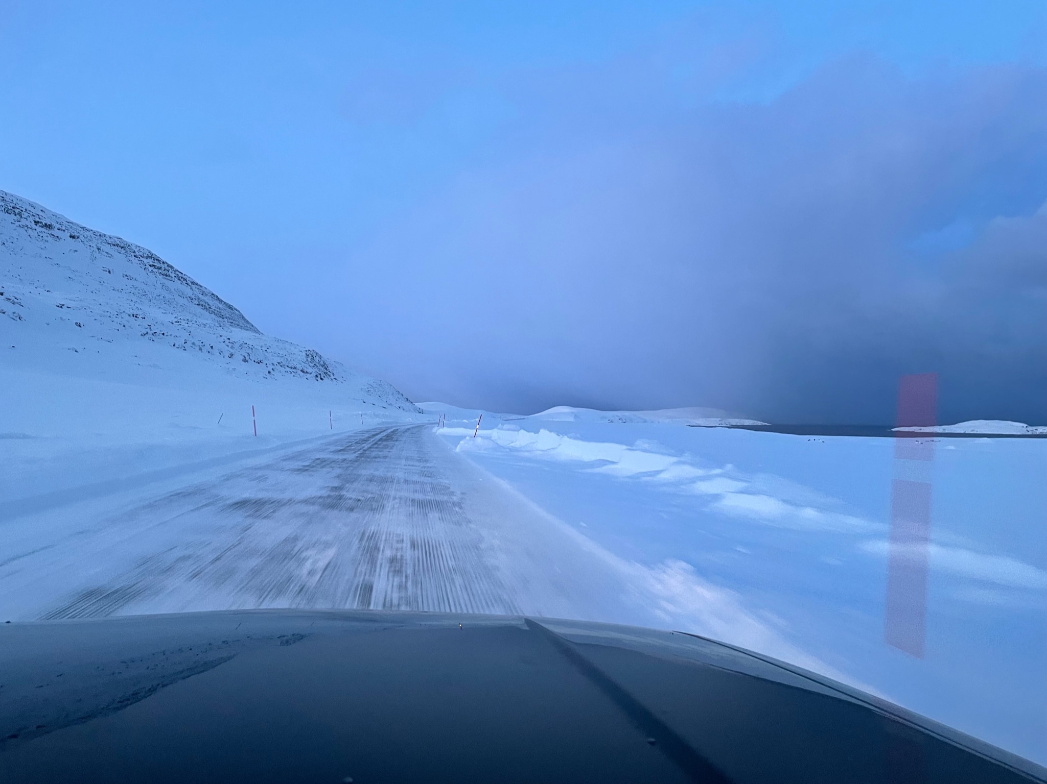 Außerdem hatten wir eine DJI Mavic Air Drohne dabei. Diese lagerten wir inklusive der Akkus immer direkt hinter unseren Sitzen, um alles möglichst warm zu halten. Trotzdem kämpften die Akkus im Einsatz ziemlich mit der Kälte. Mehr als einmal ging die Drohne von jetzt auf gleich in einen Notfall-Modus und machte eine automatische Notfalllandung – wo auch immer sie sich gerade befand. Wir schafften es zwar, die Drohne immer noch in Reichweite landen zu können, ein-, zweimal war es aber kurz vor einer Landung irgendwo über einem Fjord oder Berg. Damit wäre sie futsch gewesen – und sie war nur geliehen. Fortan starteten wir nur noch senkrecht nach oben, damit wir bei möglicher Notlandung keinen Stress haben.