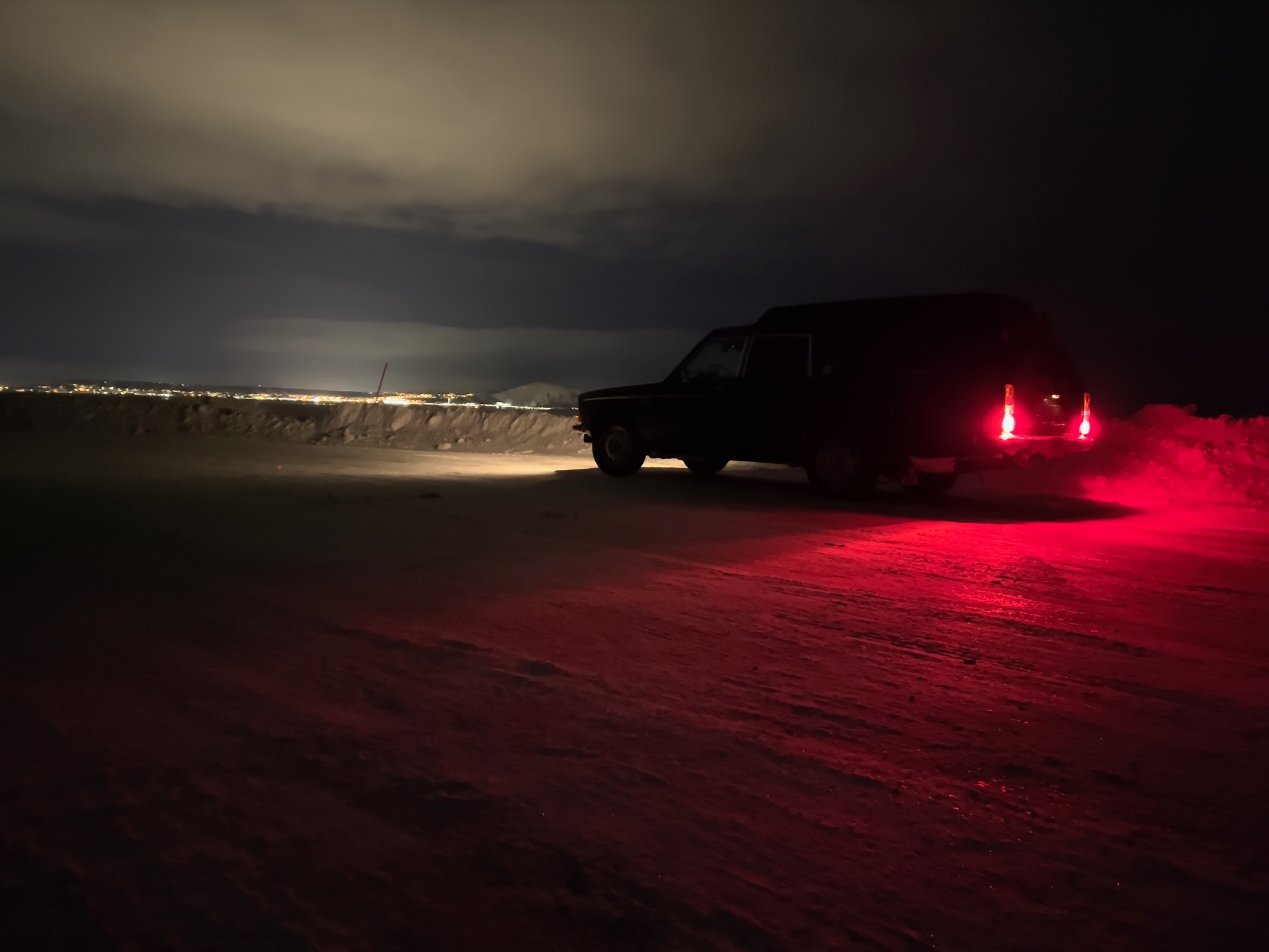 Zwei Aspekte sind bei der Beleuchtung für uns relevant gewesen: Die Entscheidung für gelbes Zusatzlicht und die Schaltung der Zusatzbeleuchtung. Das gelbe Licht sorgt auf der weißen Umgebung für einen deutlich höheren Kontrast als weißes Licht, Fahrbahnbesonderheiten sind dadurch wesentlich besser zu identifizieren. Und das ist wirklich wichtig. Nie zuvor musste die Straße so intensiv gelesen werden, wie auf diesem Trip. Die Schaltung der Zusatzbeleuchtung haben wir so gestrickt, dass sie konform zur Straßenverkehrsordnung ist. Die Hauptscheinwerfer und die integrierten Fernlichter werden über den Blinkerhebel angesteuert. Wahlweise können die Zusatzscheinwerfer zugeschaltet werden, alle vier werden dann über den Blinkerhebel wieder abgeschaltet. Die unter der Stoßstange montierten Hellas sind komplett autark von der Lichteinrichtung des Autos als Arbeitsscheinwerfer (ähnlich wie bei Geländewagen) geschaltet. Das ist bereits ein bisschen Grauzone, also vorsichtig und selber genau informieren was wie erlaubt ist. Wir sind keine Rechtshilfe-Blog für StVO-Fragen. In der Realität hat diese Schaltung aber Stress gemacht. Bei entgegen kommendem Verkehr musste immer erst am Blinkerhebel zwei Drittel der Weihnachtsbeleuchtung abgeschaltet werden, dann mit einem zusätzlichem Griff noch das letzte Drittel. Das ist nervig und dauert einfach länger. Interessierte in Skandinavien zwar kaum jemanden, die lassen ihre Lichtkanonen nämlich in der Regel bis kurz vor der Schmerzgrenze an. Ist aber arbeitsergonomisch ziemlicher Quatsch. In Zukunft werden die unter der Stoßstange montierten Scheinwerfer eine Doppelschaltung haben: Entweder komplett autark ohne die restliche Lichteinrichtung oder über den Blinkerhebel schaltbar.