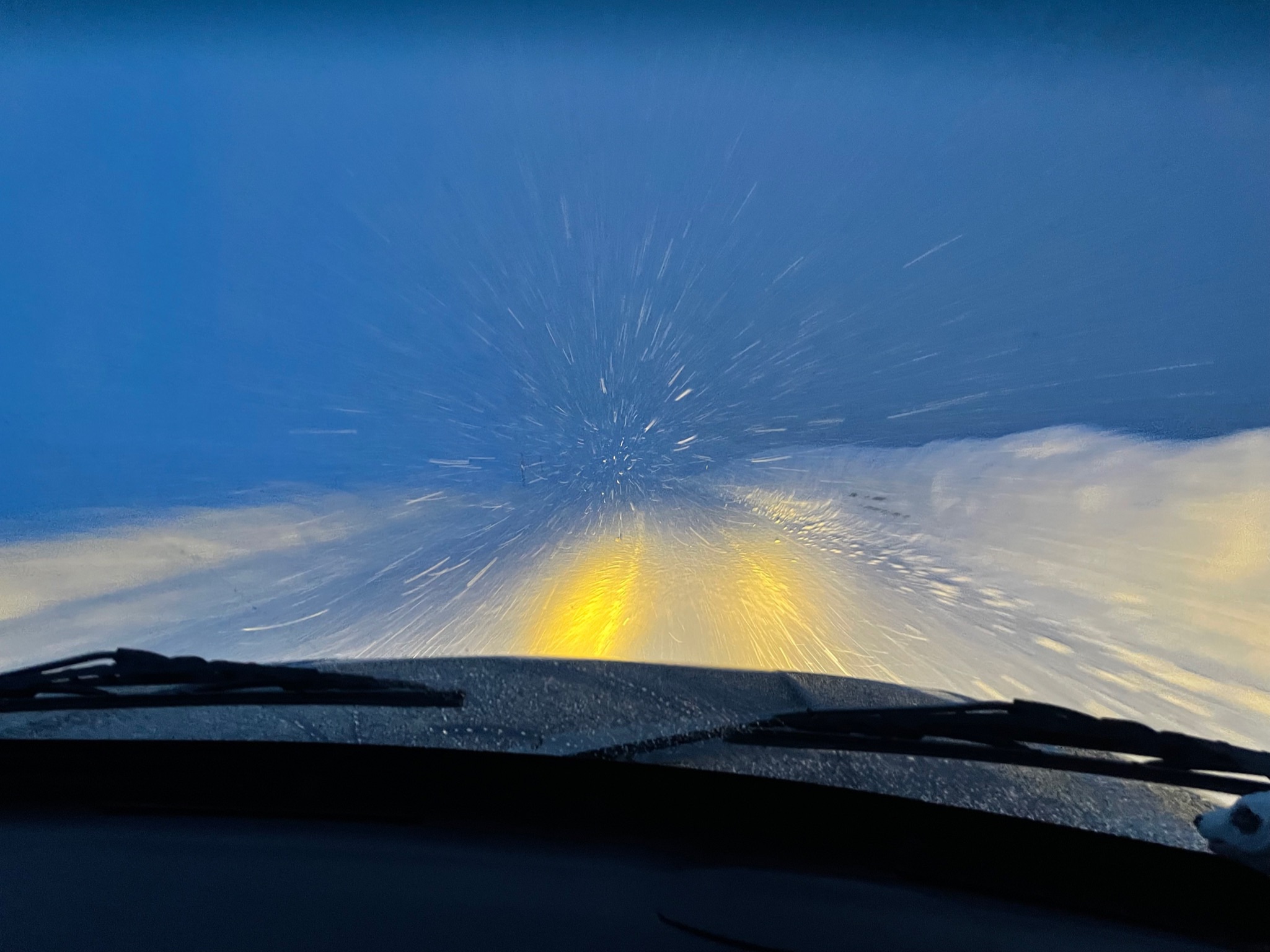 Kurz vor Start haben wir alle Scheiben im Innenraum mit Sonax AntiBeschlagSpray behandelt. Richtig hundert Prozent dicht ist die Leiche nicht zu bekommen und bei stärkeren Regenfällen hatten wir in der Vergangenheit häufig beschlagene Scheiben. Wir hofften dem damit vorbeugen zu können, richtig obergut hat das nicht geklappt. Unterm Strich war das aber auch egal, ab dem Moment, ab dem Schnee lag, hat sich durch den Unterdruck direkt an der Heckklappe immer so viel Schnee auf dieser angesammelt, dass man nach hinten eh nichts gesehen hat.