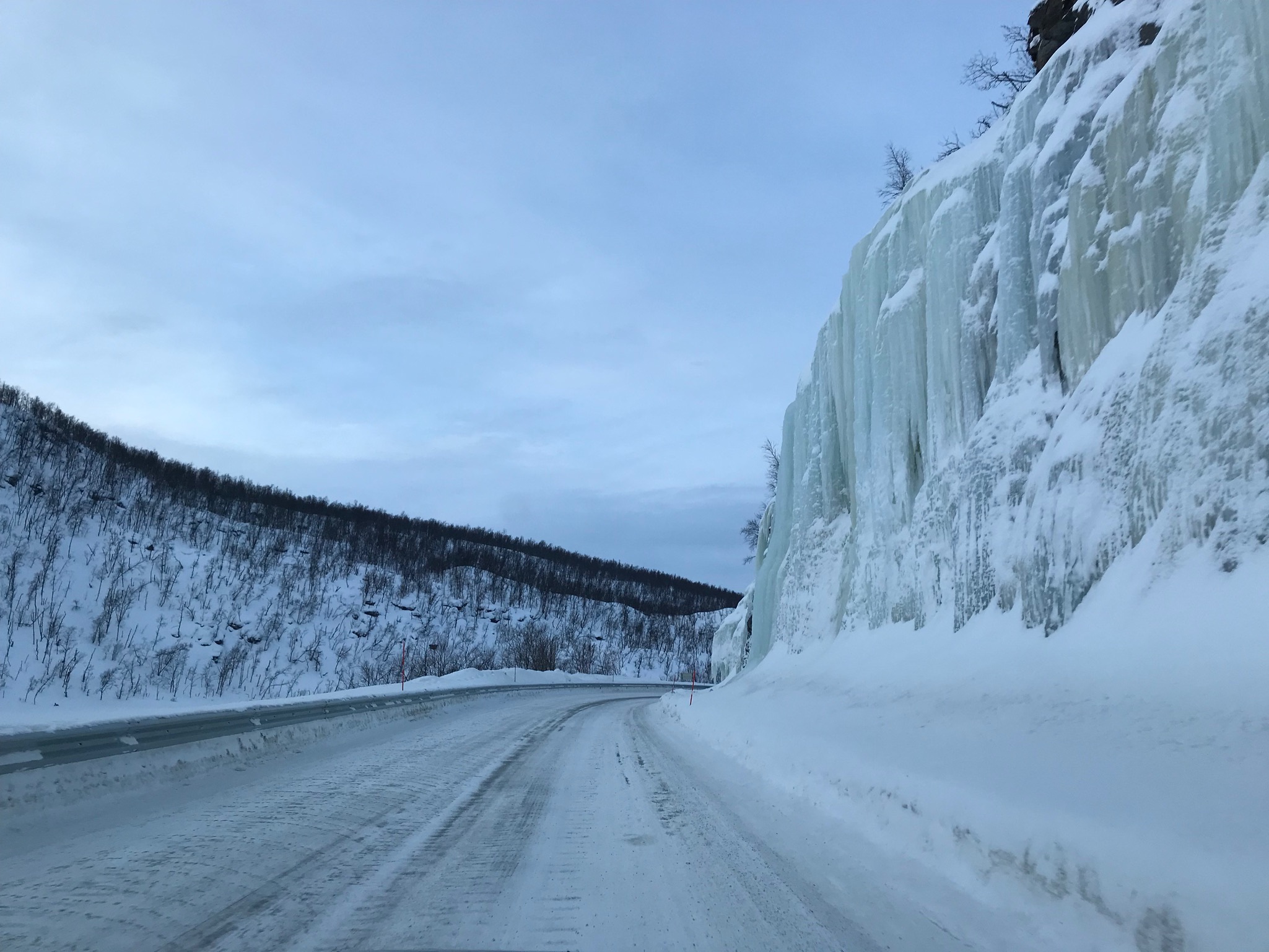 Was völlig in die Hose gegangen ist, war unsere Schuhwahl: Wir haben auf unsere Wanderschuhe gesetzt und die nicht vorhandene Isolierung des Autos unterschätzt. Der Boden ist wirklich eiskalt und es zieht heftig durch die Schuhsohle in die Füße. Tagelang haben wir unsere Füße unterwegs kaum warm bekommen. Und das fühlt sich wirklich seltsam an: Alles ist warm, nur die Füße sind Eisklötze. Beim nächsten Mal würden wir uns vor Ort Schuhe holen oder vorab dicke Winterstiefel kaufen. Die Herausforderung dabei – zumindest für den Fahrer – die Balance zwischen dicker Sohle für gute Isolation und Pedaltauglichkeit zu finden. Bei der Huskeytour haben wir zusätzlich zu den Overalls dicke, gummistiefelartige Teile bekommen. Die waren superwarm – aber Autofahren wäre mit denen nicht möglich. Für die Schuhe hatten wir noch so Überzieh-Spikes dabei. Tatsächlich gebraucht haben wir sie nicht. Man gewöhnt sich schnell an den vereisten Untergrund und im Gegensatz zu den Vereisungen hier ist das Eis sehr spröde und bietet tatsächlich so etwas wie eigenen Grip.