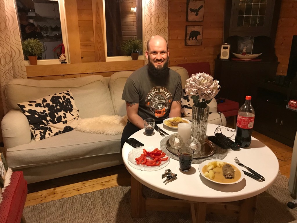 Wir waren gut für Frühstück ausgestattet, dafür haben wir unterwegs im Prinzip nichts eingekauft. Das ist sinnvoll, weil die Lebensmittelpreise in Skandinavien recht hoch sind (so wie alle anderen Preise auch). Zusätzlich hatten wir für ca. die Hälfte aller Tage Bolognese, Gulasch und Rouladen eingeweckt. Für die letzten beiden haben wir uns immer mal wieder mit Kartoffeln und Gemüse versorgt. Wenn wir nicht selber kochen konnten, gab es Abendessen auswärts, das gestaltete sich je nach Übernachtungsort manchmal etwas schwierig, brachte aber auch echt positive Überraschungen mit sich. Darüber hinaus waren wir reichlich mit Snacks und Leckereien aus Deutschland versorgt. Außerdem hatten wir immer warme Getränke in Thermoskanne und -bechern mit an Bord.