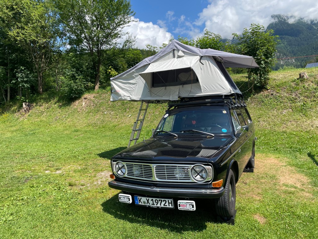 Dank der kurzen Strecke waren wir früh am Campingplatz und hatten Glück: obwohl vorne bereits das Schild „Ausgebucht“ stand, fand die Rezeption noch ein nettes Plätzchen für uns. Auto also geparkt, auf Keilen ein bisschen ins Lot gebracht, das Dachzelt aufgeklappt und alles auf Durchlüften gestellt um ein bisschen was vom Tag zu haben.