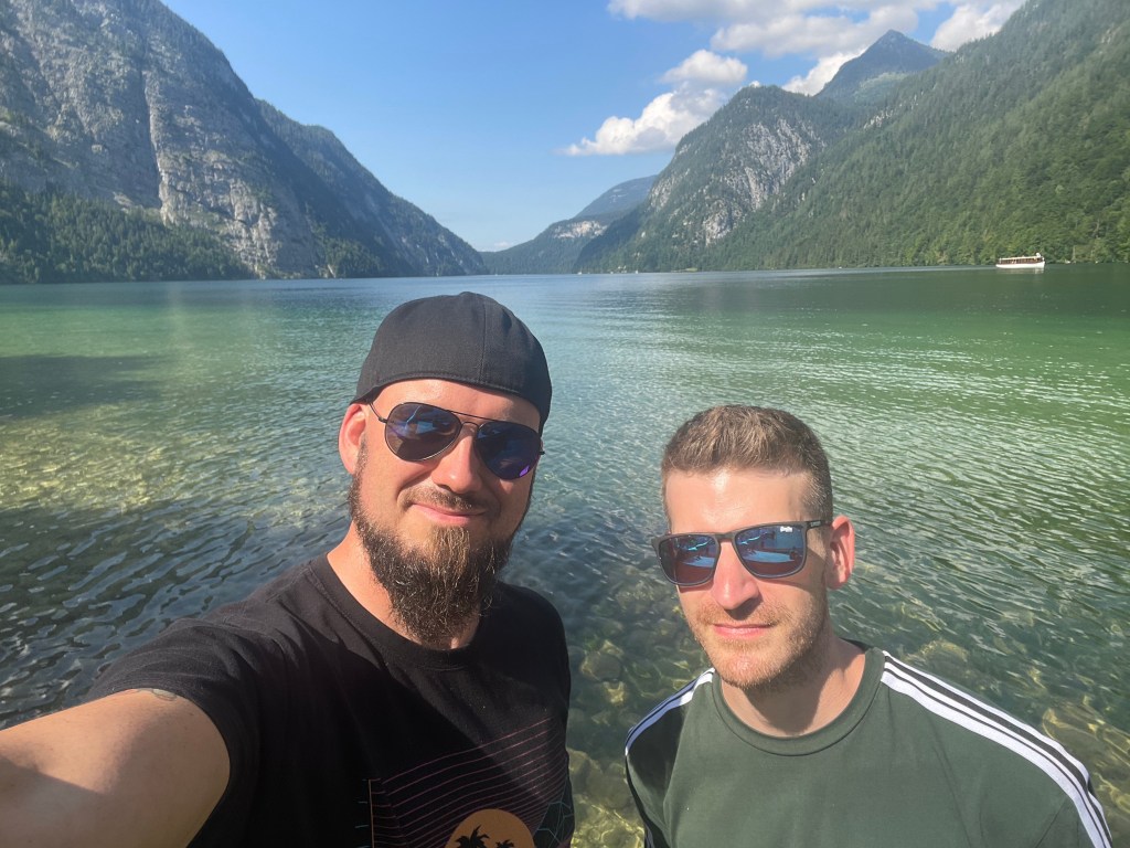Wie gesagt, furchtbar touristisch. Aber häufig sind diese touristischen Orte aber auch nicht zu Unrecht touristisch. Dieses ganze Fleckchen Land ist beeindruckend schön. Der Königssee, der sich nur aus Quellen und Geburgsbächen speist und meistens 100, an einigen Stellen bis zu 200 Meter tief ist, liegt in einem tektonischen Grabenbruch, ein bis zu 900 Meter dicker Gletscher hat hier im späten Jura den Fels ausgeschält und so den Grund des Königssees geschaffen. Umgeben von Watzmann und Hagengebirge erinnert das ganze mit seiner langgezogenen Form ein wenig an einen Fjord. Und wer jetzt denkt: „St. Bartholomä? Da war doch was?“ hat Recht und folgt zuviel „Travelblogger*innen“: das ist ein saubeliebter Insta-Spot. Micha und ich haben natürlich das gemacht, was man an so einem Spot macht: nen saugutes Selfie.
