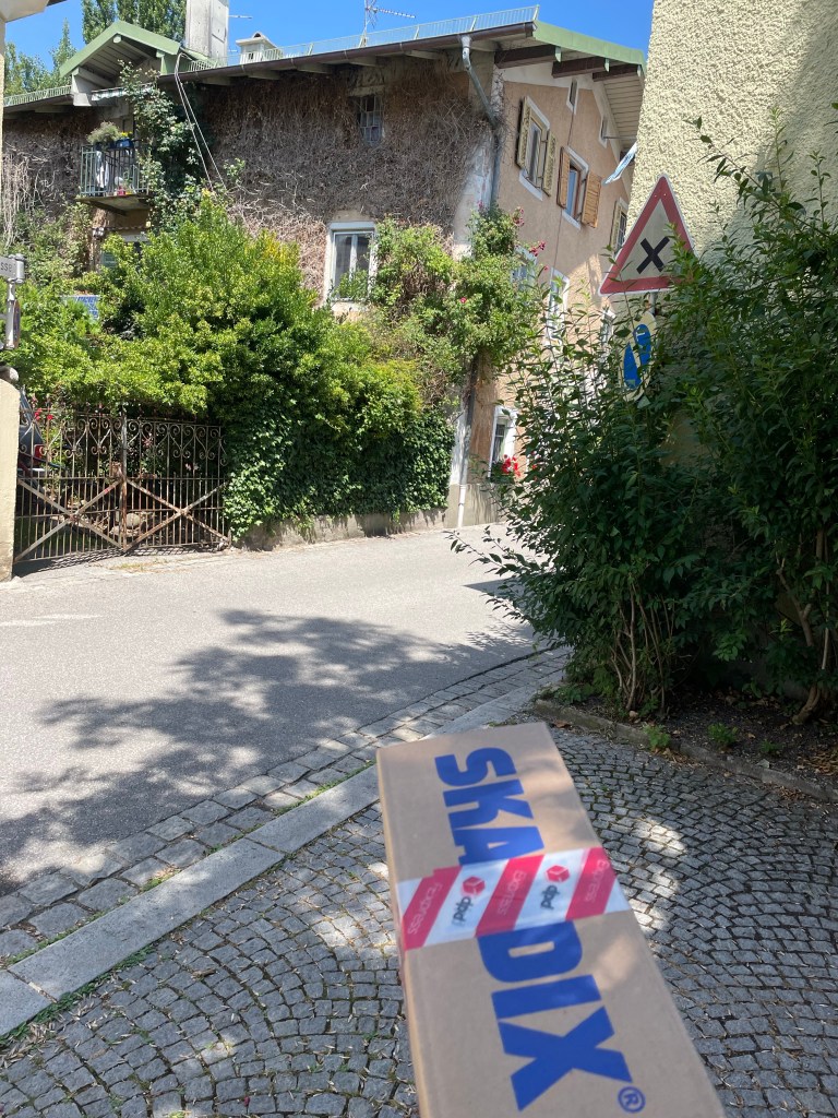 Der Plan für den Tag: raus aus dem deutschsprachigen Raum und Strecke machen so lange das Radlager hält. Die deutsch-österreichische Grenze ist ruckizucki erreicht, sie versteckt sich zwischen Bayrisch Gmain und Großgmain. Von dort ziehen wir zügig Richtung Autobahn, nach wie vor nicht die schönste Art, zu reisen aber die schnellste. Vorher natürlich noch das obligatorische Pickerl in die Scheibe geklebt und Online schon mal die Maut für Slowenien gebucht.