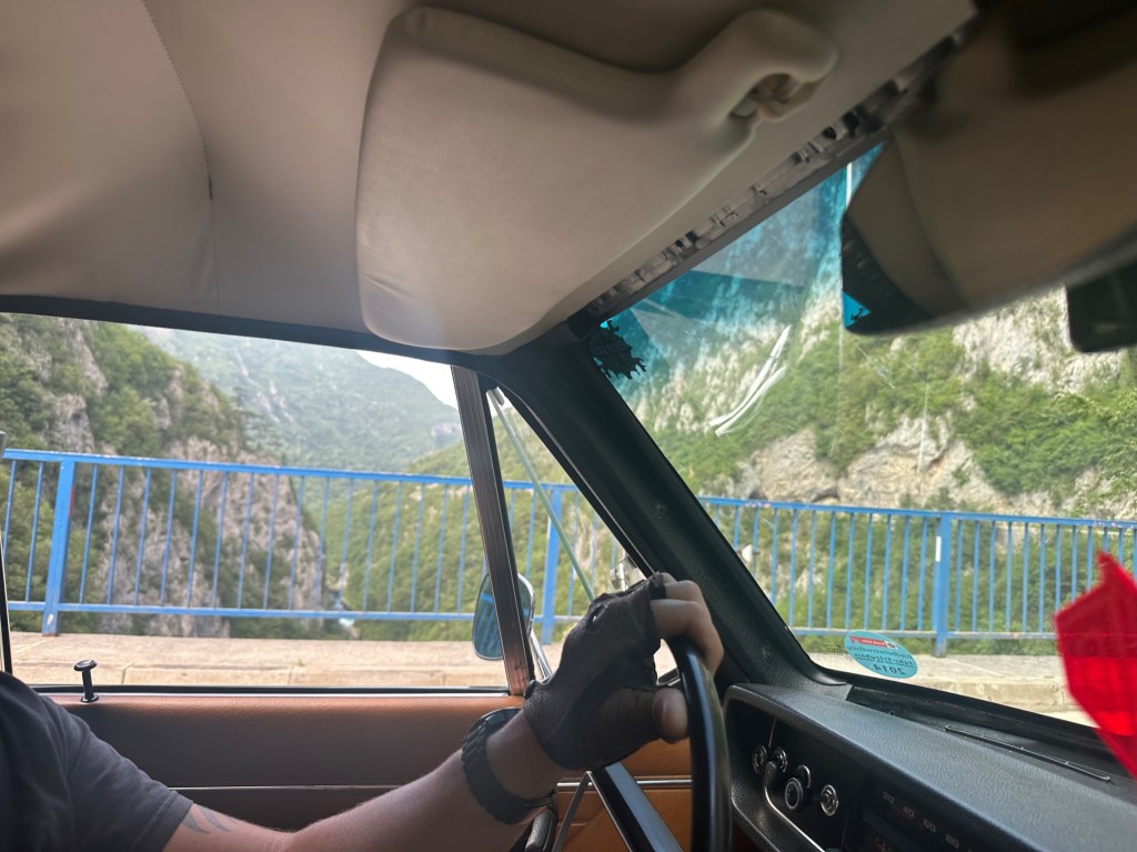 Vor uns liegt der Thore-Pass. Die 1936 gebaute Passstraße kann in der Regel nur zwischen Mai und Oktober befahren werden. Die 56 km mit bis 15% Steigung sind erst 2021 vollständig asphaltiert worden. Hinzu kommen harte Turns, eine sehr enge Fahrbahn, plötzliche Drops und sehr steile Passagen. Das ganze bei regelmäßigem Gegenverkehr. Fast nicht erwähnenswert weil Albanien-obligat: Leitplanken oder ähnliche Fahrbahnbegrenzungen sind nur spärlich vorhanden und Anhaltemöglichkeiten gibt es nur in überschaubarer Menge und meistens sind sie gleichzeitig auch die einzige Ausweichsmöglichkeit. Entsprechend wenig Fotos gibt es von dieser Passquerung.