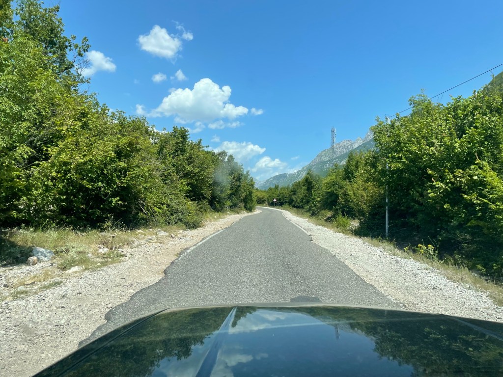 Der Tag startet mit starkem Sonnenschein. Es ist innerhalb kürzester Zeit superwarm. Trotzdem schlafe vor allem ich relativ lang. Wir packen zusammen, frühstücken noch etwas und machen uns dann auf dem Weg. Heute geht es mach Albanien und wir sind beide etwas aufgeregt. Albanien ist, so zumindest unsere Erfahrungen der letzten Besuche, noch einmal eine andere Hausnummer. Ursprünglicher, wilde Straßenarchitektur, noch wildere Autofahrer:innen. Vor allem ist Albanien deswegen aber ein Land, in dem man ganze Tage auf der Straße verbringt ohne dass man Strecke macht.