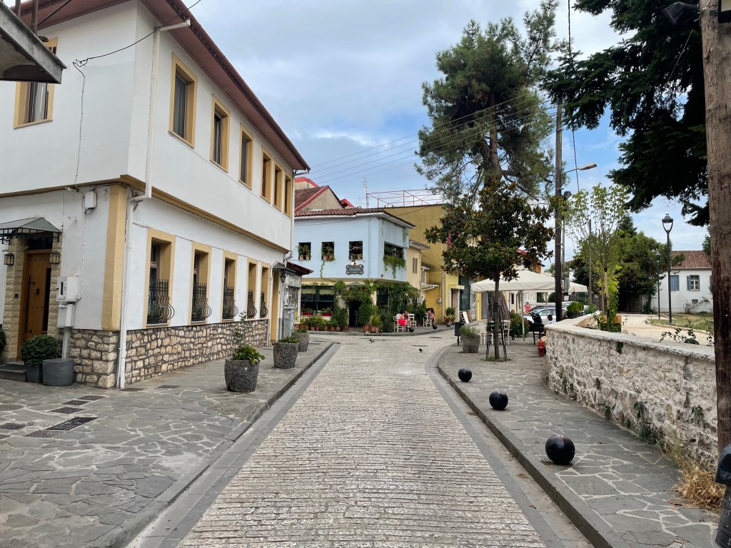 Mit Ioannina habe ich mich null beschäftigt, die Stadt ist einfach nur ein Routenpunkt. Wir parken trotzdem um was zu Abend zu essen und werden super angenehm überrascht: die Stadt liegt sehr nett zwischen Bergen an einem See und hat eine ganze niedliche Altstadt. Von @b_road_stories haben wir ein paar Tipps für Griechenland ab hier bekommen, leider hat das empfohlene Restaurant zu. Wir helfen uns selbst und essen ganz leckeres Souflaki, Zaziki mit Brot und gebackenen Käse. Dabei checken wir die Campingmöglichkeiten für die Nacht und müssen feststellen, das die Infrastruktur im Hinterland nicht auf Camping ausgelegt ist. In der Stadt selber gibt es einen laut Bewertungen ganz schrecklichen WoMo-Stellplatz und sonst im näheren Umkreis nichts. An der Küstenlinie gibt es einige Campingplätze, da wollen wir aber nur ungerne hin. Wir brauchen kühle Luft, Bluetooth-Lautsprecher-Detox und einen schönen Spot.