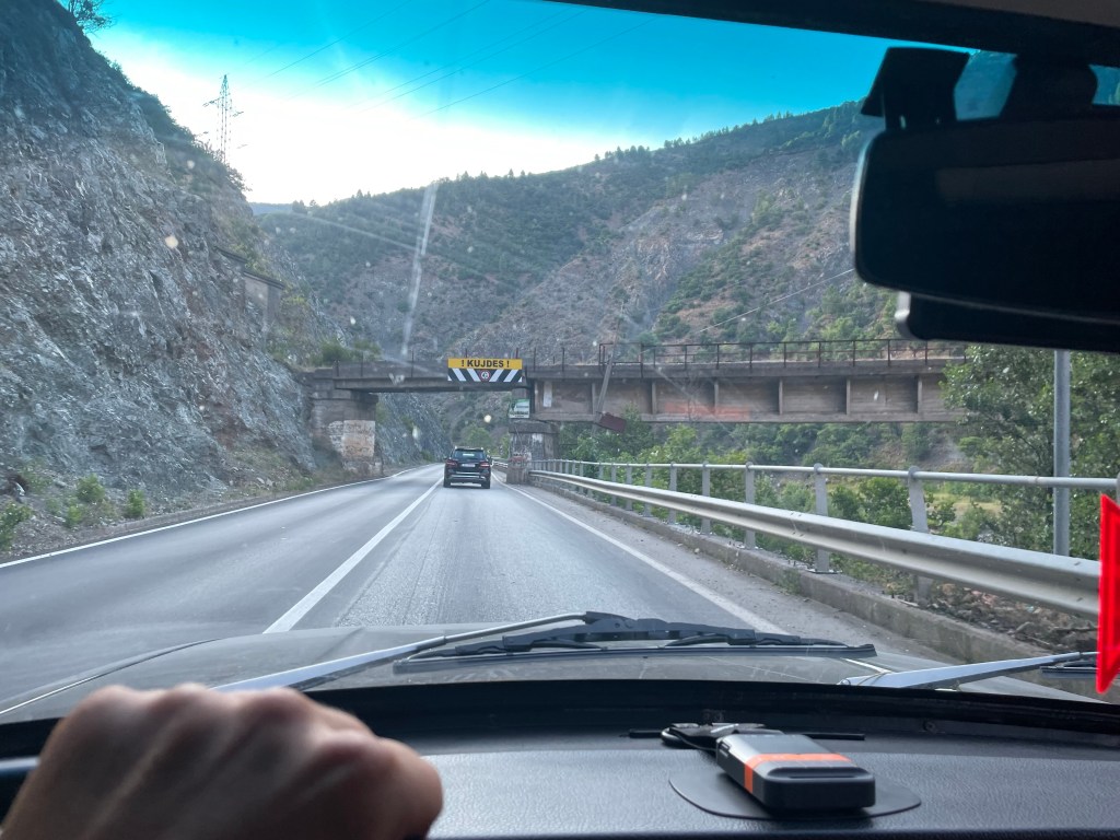 Die aktuelle Grenze Hriechenland/Albanien ist wieder großer Spaß: ich rolle in die Ausreise aus Griechenland ein, komplett leerer Grenzposten. Tausend Fenster mit Klappen, alle unbesetzt. Auch das in dem ein kleiner Zettel mit „Passport“ klemmt. Ich rolle langsam weiter als auf einmal aus einem der Fenster eine Hand mit einer Stop-Bewegung schnellt und die bis dato offene Schranke runter fährt. Ich halte, steige aus, gehe zu dem Fenster und bekomme auf griechisch mitgeteilt, dass ich zum Passport-Fenster muss. Übrigens: seltsame Angewohnheit von Grenzer:innen, offensichtlich nicht dem Land zugehörige Menschen in der Landessprache herum zu kommandieren. Das macht alles viiiiiieeel einfacher. Warum da nicht Menschen mit der Mindestqualifikation Englisch arbeiten, ist mir völlig schleierhaft. Ich weise darauf hin, dass da niemand sei, egal, ich muss da warten. Mache ich auch. Fast zwanzig Minuten lang. Zur Erinnerung: ich bin da quasi alleine, hinter mir kommt irgendwann ein weiteres Auto. Irgendwann bequemt sich der Grenzer zu kommen, wirft einen gelangweilten Blick auf meinen Perso und das wars. Dafür habe ich natürlich gerne gewartet. Die Einreise nach Albanien ist fast das gleiche Spiel, ergänzt um „DOKUMENTA AUTO!!!!!“ . Was würden diese Menschen machen, wenn die Grenzen weg wären und sie niemanden mehr anschreien könnten?