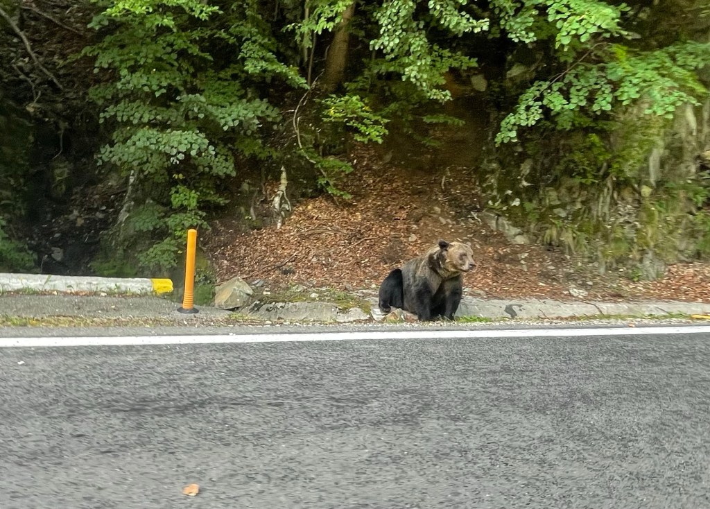 In Ivancea biege ich Richtung Norden auf die 7C ab, diese Strasse wird im späteren Verlauf der Transfagarasan. Hier ist es noch eine grade gebaute, relativ unspannende Hauptstraße, ab Capatineni soll es spannend werden. Wird es dann auch, anders als ich dachte. Je näher ich dem Staudamm komme, umso zäh fliessender wird der Verkehr. GoogleMaps kündigt bereits Stau an, dann verliere ich in den Schluchten den Empfang. Irgendwann rolle ich auf die Ursache zu: am Straßenrand sitzt ein ausgewachsener Braunbär und guckt sich diesen ganzen Kasparzirkus vor sich in Ruhe an. Und diese dummen Menschen, die können halt nicht vorbeifahren und dabei ein Foto machen, die müssen anhalten, sich aus dem Fenster lehnen, winken. Drei Meter von einem wilden Bären entfernt. Das ist aus so vielen Gründen ultradämlich, mindestens aber weil es einen langen Stau verursacht. Zeit die dafür drauf gegangen ist: gut 40 Minuten. Ich hatte die Hoffnung, es jetzt überstanden zu haben. Und schon die nächsten Bremsleuchten vor mir. Ich gucke den Berg hoch, ich kann die Strasse weiter oben im Verlauf sehen und überall stehen Autos. Lange Rede kurzer Sinn: ich stehe bis weit hinter den Staudamm im Stau. An dem Staudamm und dem dahinterliegendem Stausee haben sich diverse Freizeitmöglichkeiten angesiedelt, man kann Schiff fahren, Böötchen mieten, essen. Und da wollen alle hin. Da es dort aber keine Parkplätze gibt, wird einfach am Rand geparkt, die, die noch keinen Parkplatz haben, suchen einen, die sowieso nicht breite Straße ist im Prinzip nicht mehr gegenläufig befahrbar und bums: Stau ohne wirklichen Grund. Zeit die draufgeht: eine gute Stunde.
