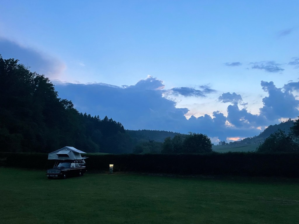 Anschließend folge ich der Soca bis zu meinem Platz für die Nacht, einem Campingplatz ohne Parzellen, dafür mit Restaurant (was gut ist, meine Vorräte sind überschaubar). Der Platz besteht aus zwei Wiesen, eine unmittelbar an der Soca, diese ist gerammelt voll. Auf der anderen Wiese ist Platz, ich baue mein Lager auf und gehe etwas Essen. Das frühabendliche Chillen im Campingstuhl muss ich ins Dachzelt verlegen, es fängt an zu regnen und entscheidet sich dazu, auch nicht aufzuhören.