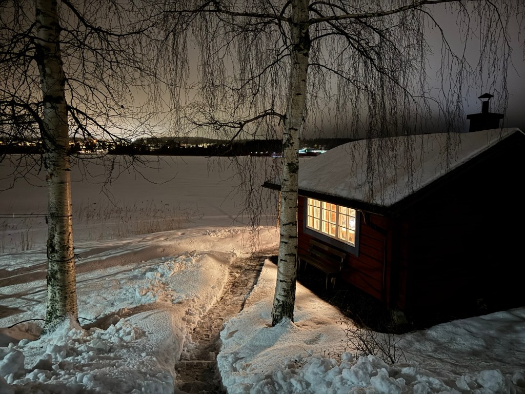Von dort fahren wir auf die über eine kleine Brücke mit dem Festland verbundene Insel Dekarsön. Hier haben wir ein Ferienhaus gebucht. Heute morgen starteten wir aus einem modernen und gepflegten Ferienhaus, dass mit viel Liebe zum Detail eingerichtet war. Heute Abend landen wir in einer in die Jahre gekommenen Unterkunft, die ausstattungstechnisch eher von „das war alles noch über“ zeugt. Immerhin können wir das Auto an Landstrom hängen, es gibt einen Kamin mit ausreichend Holz und – das riesige Plus – eine kaminbefeuerte Sauna direkt an einem Ostsee-Arm. Der Tag endet also mit Schwitzen und Nudeln mit Bollo.