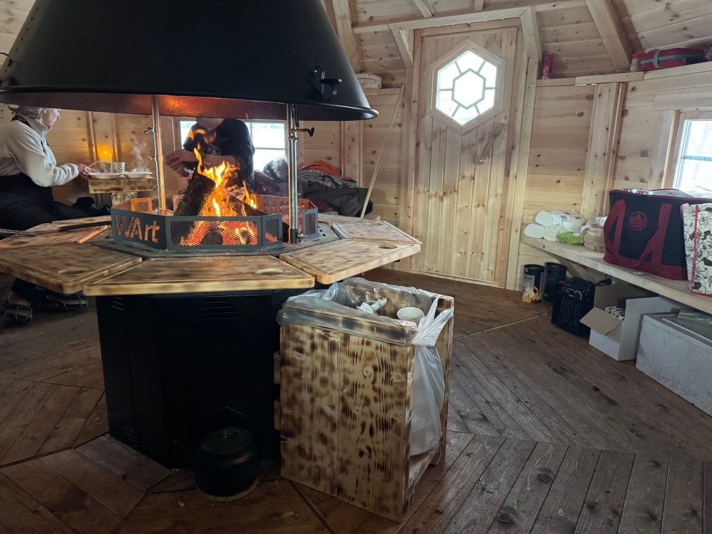 Nach gut zwei Stunden ist die Tour vorbei und wir denken im ersten Moment „ach Schade, jetzt schon?!“, während im zweiten Moment unsere Körper Bedenken für eine weitere Runde anmelden. Das Ganze ist ordentlich anstrengend und wird uns morgen wahrscheinlich einen Muskelkater bescheren. Wir spannen die Hunde ab, bedanken uns mit einer ausgiebigen Knuddelrunde und finden uns in einer Blockhütte um ein offenes Feuer ein. Hier sitzen wir im Warmen mit unserer Guide, sie versorgt uns mit warmer Fischsuppe und im Anschluss mit dampfendem Kakao und uns bereits bekannten Lefse. Wir nutzen die Zeit und reden mit ihr über die Hunde, die Arbeit mit ihnen sowie das Leben hier in den Lyngen Alpen und bekommen spannende Einblicke.