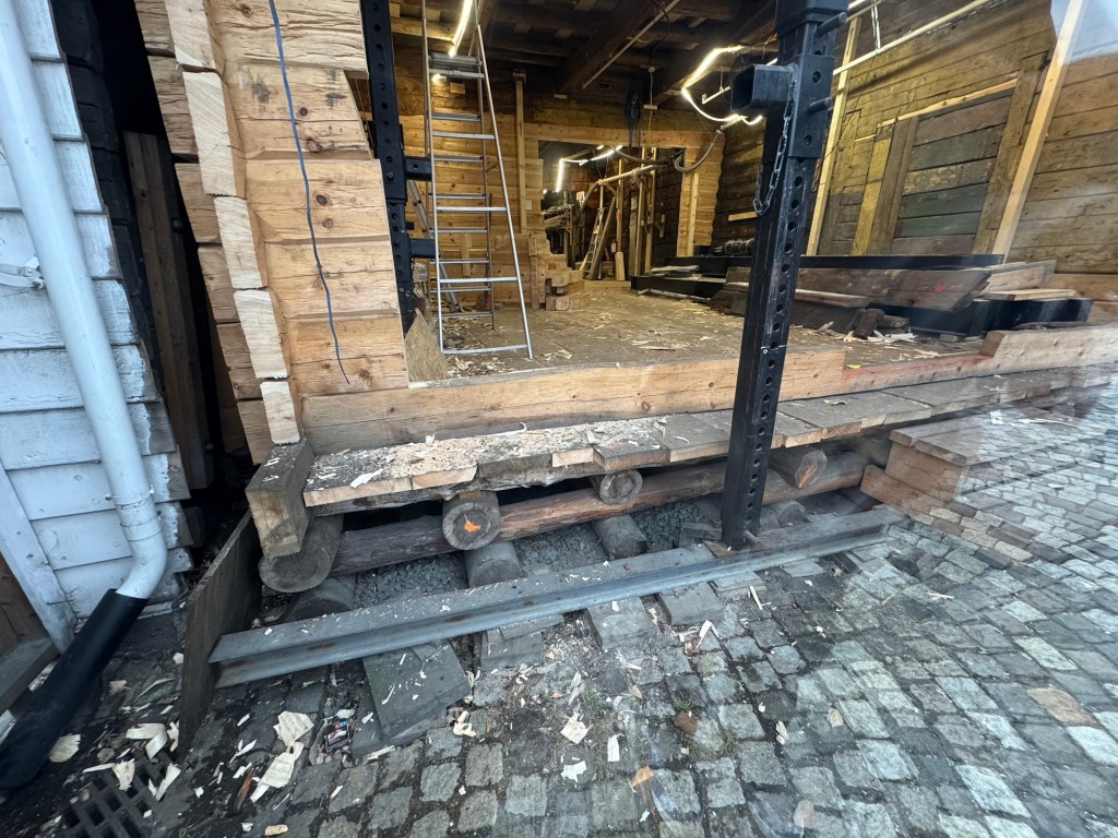 Nichtsdestotrotz starten wir wie gehabt in den Tag, einmal morgendliche Routine von A bis Z. Bevor wir auschecken gehen wir im Schneegstöver noch einmal durch den kleinen, direkt neben unserem Hotel liegenden Ortsteil Bryggen. Gestern wuselte es da vor Menschen, das war uns nichts. Heute Morgen ist es wie angenommen deutlich leerer, vielleicht auch dank Schneegestöber.