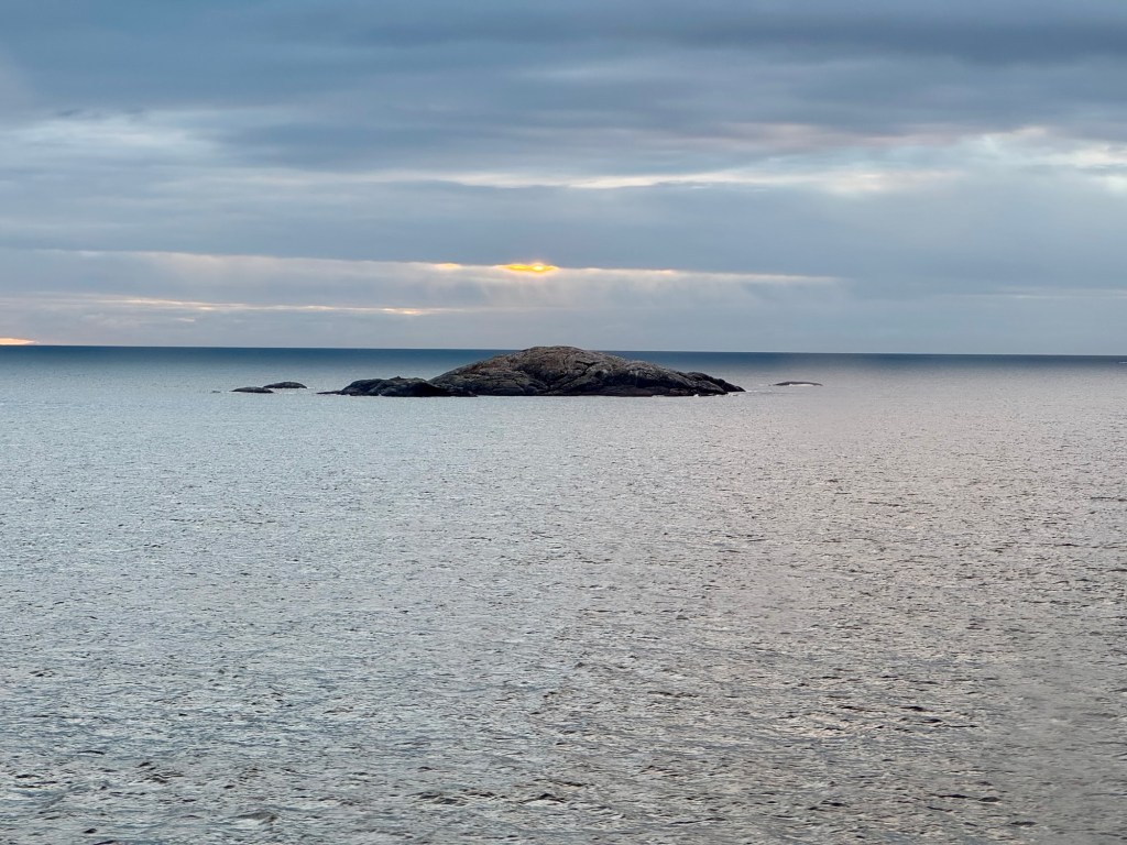 Gegen 22:00 Uhr sind wir spürbar auf dem offenen Meer. Obwohl unser Schiff riesig ist, 170 Meter lang und 33 Meter breit, hebt und senkt es sich spürbar. Leider nicht nur von vorne nach hinten, sondern auch von links nach rechts. Ob das schon raue See ist, wissen wir nicht. Die Wellen hören wir aber schon laut gegen das Schiff brettern und die Gischt an der Bordwand brechen. Wir machen es uns so gemütlich wie geht, drehen die Heizung der Kabine etwas höher und legen die Füße hoch. Mit einer Maximalgeschwindigkeit von 40 km/h nähern wir uns so dem nördlichsten Teil von Dänemark.