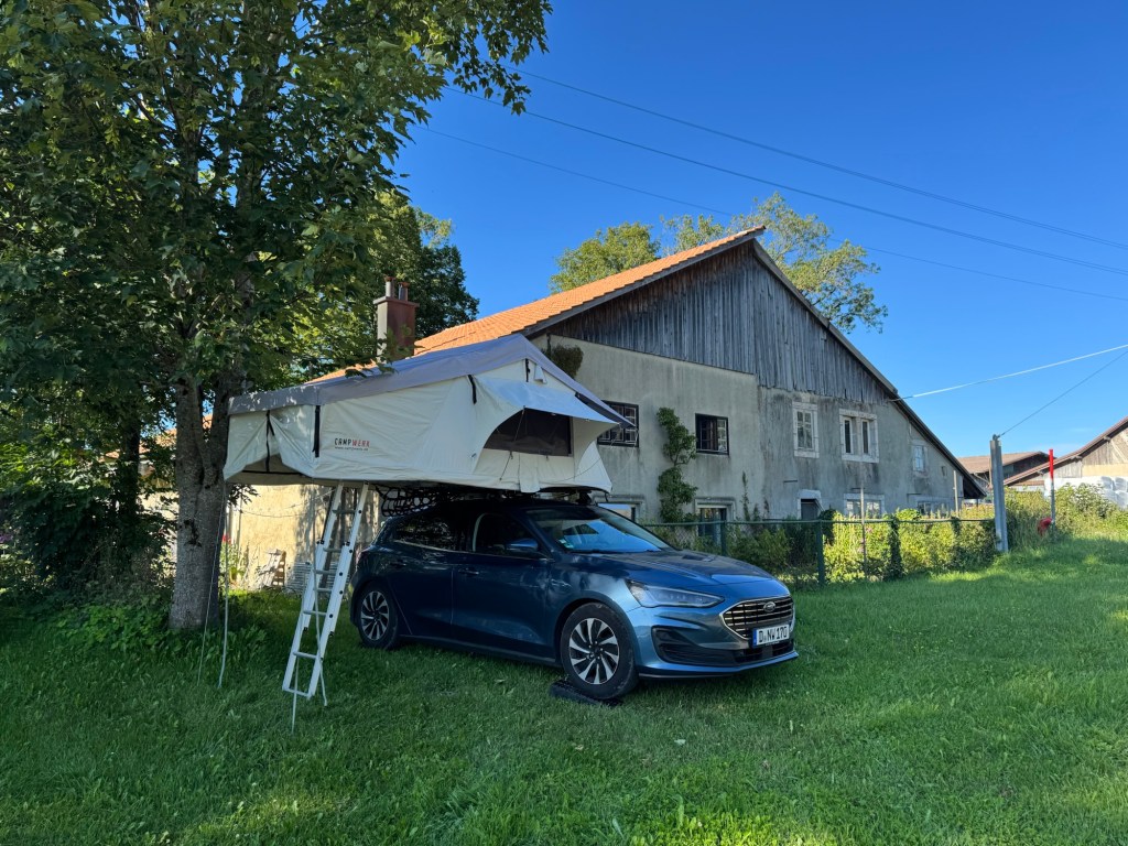 Genauso früh wie der Tag begann, endet er auch. Wir sind müde und uns stecken die 700 Kilometer in den Beinen. Mit der schwindenden Sonne wird es wieder kühler und Mücken freuen sich über uns als Buffet. Im letzten Rest Tageslicht klettern wir die Leiter zum Dachzelt hoch und winken Barbara noch eine gute Nacht hoch zu ihrem Schlafzimmerfenster. Morgen starten wir dann die eigentliche Tour. Wir haben Bock!