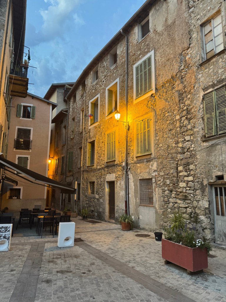 Die Fahrt endet in Sospel, einem 3807 Einwohner-Städtchen auf etwa 350 Metern Höhe. Hier fliesst der Bévéra durch, bis nach Menton sind es noch ca. 20 Kilometer. Die letzten 20 Kilometer der Route des Grandes Alpes. Die heben wir uns aber für morgen auf. Die Altstadt ist mittelalterlich geprägt, über den Fluss spannt eine Brücke aus dem 11. Jahrhundert. Es riecht nach Geschichte. Wortwörtlich. Unser AirBnB, ein klitzekleines Ein-Raum-Appartment, ist in der Altstadt und auf dem Weg dorthin fällt uns immer wieder der feuchtmuffige Geruch alter Keller auf. Trotz 30 Grad im Schatten. Das AirBnB ist in einem mindestens 200 Jahre altem Haus, im Erdgeschoss und riecht genauso. Interessiert uns erstmal nicht, wir brauchen Essen und finden in der Altstadt auf dem Place Saint-Nicolas direkt vor der Kathedrale Saint-Michel (witzigerweise das größte Gotteshaus im katholischen Verwaltungsbereich Nizza) ein kleines, familiengeführtes Restaurant das just in dem Moment aufmacht, als wir davor stehen. Wir setzen uns an den äußersten Tisch fast mitten auf dem Platz und freuen uns auf ein Abendessen in wundervoller Atmosphäre. Und entscheiden uns anhand der Karte schnell, dass wir heute der Völlerei fröhnen werden.