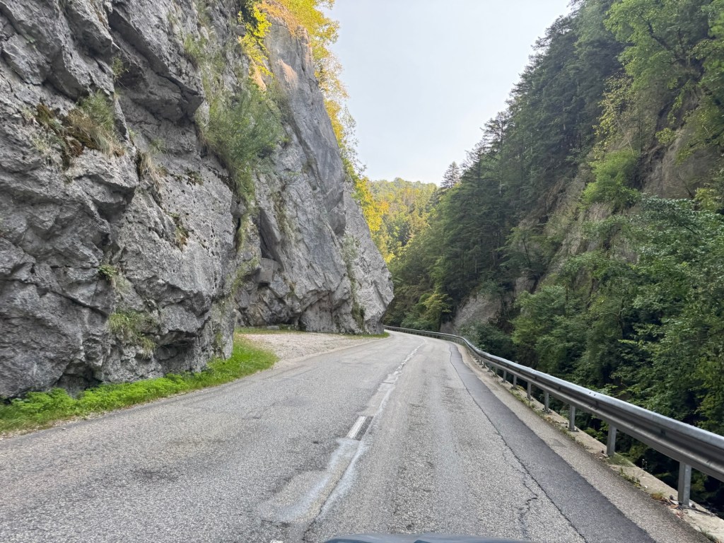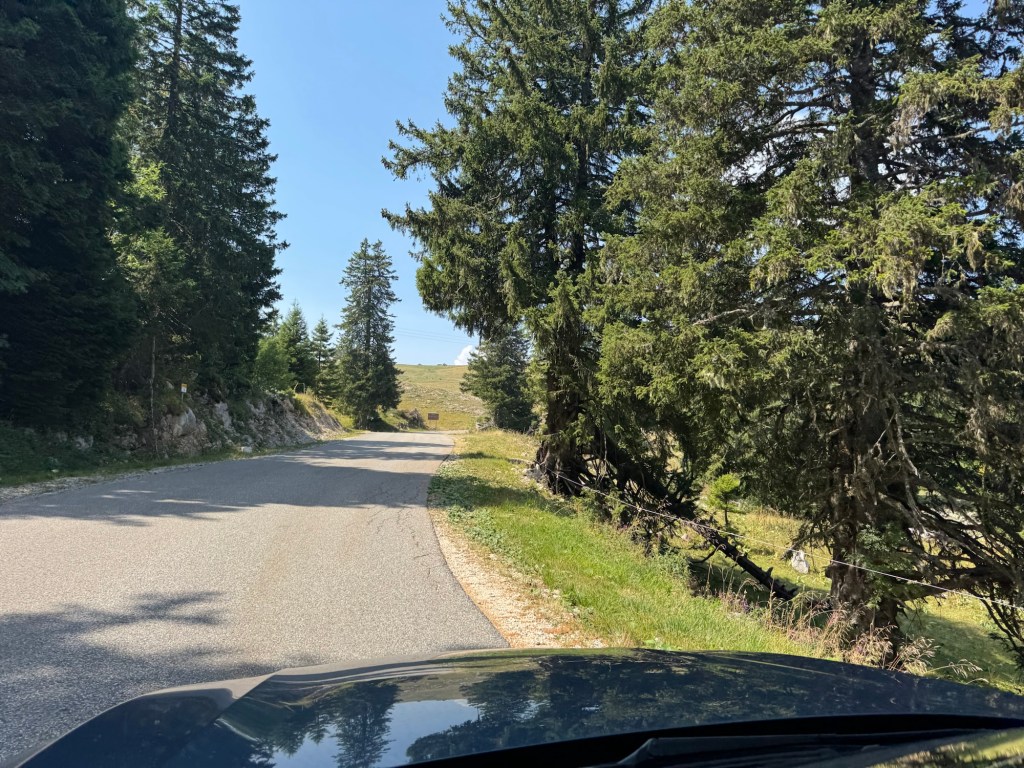 Ich hatte gestern geschrieben, dass es im Prinzip nur drei Wege aus und in die Stadt Grenoble gibt. Wir fahren Variante Vier, einen kleinen Schleichweg hintenrum aus der Stadt raus. Ab dem Quartier La Vierge Noire geht es auf sehr steilen und sehr schmalen Straßen in die Berge. Schnell ist die D512 von Wald umgeben, wir passieren den Col de Vence und fahren stromaufwärts neben dem gleichnamigen Bachlauf. Es folgt der Col de Palaquit, der Col de Porte, wir düsen über wunderbare Nebenstraßen durch dichte Waldlandschaften. Durch die offenen Scheiben weht kühle Waldluft ins Auto, aus den Boxen pumpt heute viel laute elektronische Musik, und in der ein oder anderen Passage fliegt der Focus förmlich um die Kurven.