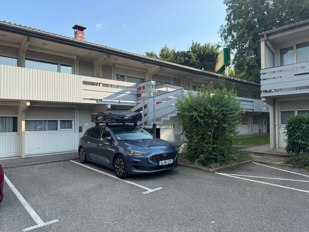 Unser Hotel ist ein Motel. War uns beim buchen nicht bewusst, umso erstaunter sind wir jetzt. Es ist so ein Ding, wo zweietagig Zimmer sind, alle zugängig von außen. Wo man sein Auto einfach vor der Zimmertür parkt. Habe ich noch nie gemacht, muss ich dafür also garnicht erst in die Staaten. Der Standard ist niedrig, aber es riecht nach Chlor was für Sauberkeit spricht und die Betten scheinen bequem. Wir nehmen unser kleines Gepäck, tragen alles die zwei Meter vom Auto ins Zimmer und beenden diesen Tag. Der auch unsere Zeit in Frankreich beendet. Morgen geht es zurück in die Schweiz.