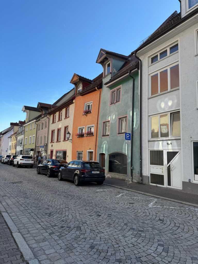 Anschließend geht es zurück ins Hotel, duschen und den Dreck und Schweiß des Tages abwaschen. Danach gönnen wir uns einen Spaziergang durch die Altstadt. Sie ist nett, verwinkelt und freundlich. Es gibt einen Haufen kleiner Geschäfte, nicht nur Ketten. Obligatorisch besuche ich die beiden Kirchen, der Kontrast zwischen evangelisch und katholisch könnte nicht krasser sein. Die evangelische Kirche ist hell und voller Nüchternheit, die katholische Kirche ist ein Fiebertraum in Barock.