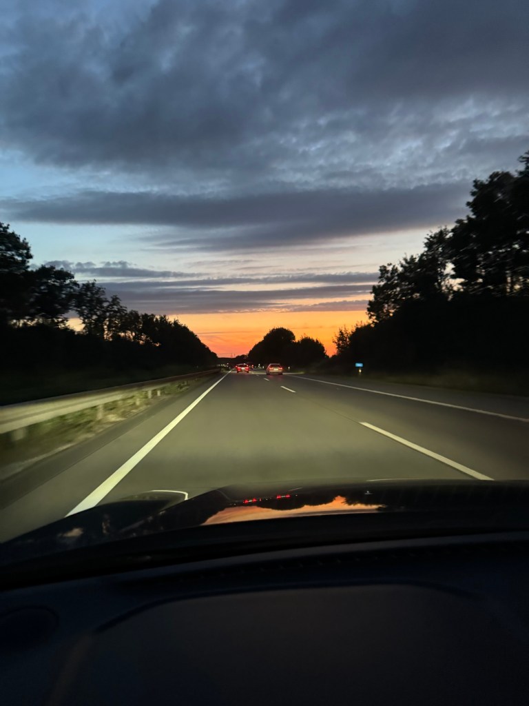 Und machen uns auf den Weg. Über 500 Kilometer liegen vor uns, die Meisten davon auf der deutschen Autobahn. Gut fürs Strecke machen, langweilig wie nichts sonst. Bis auf wenige Staus kommen wir gut durch, die Landschaft zieht hinter Schallschutzmauern an uns vorbei.
